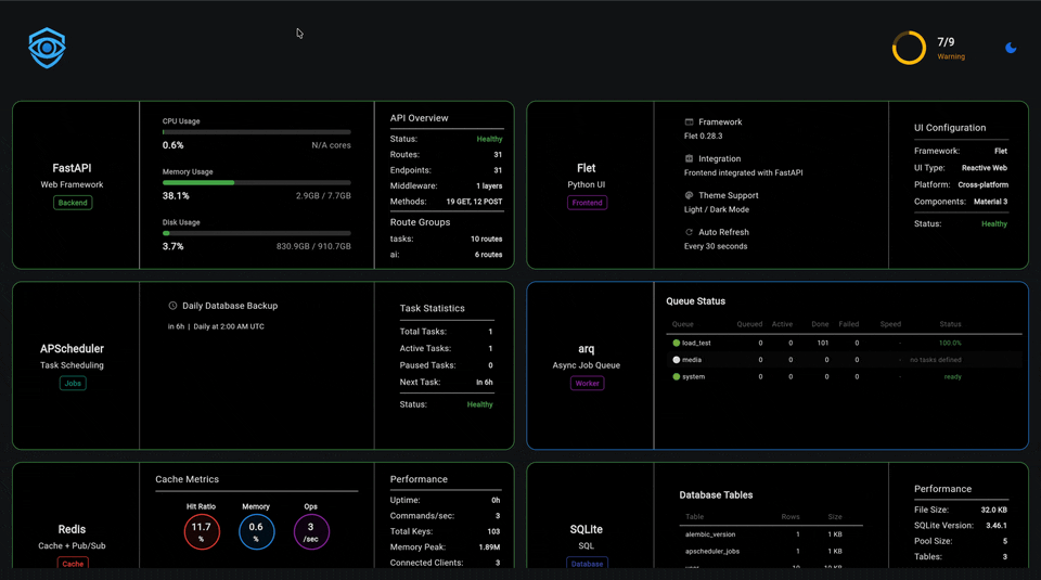 Aegis Stack respects your expertise. We maintain existing standards - FastAPI for APIs, SQLModel for databases, arq for workers. No custom abstractions or proprietary patterns to learn. Pick your components, get a production-ready foundation, and build your way.