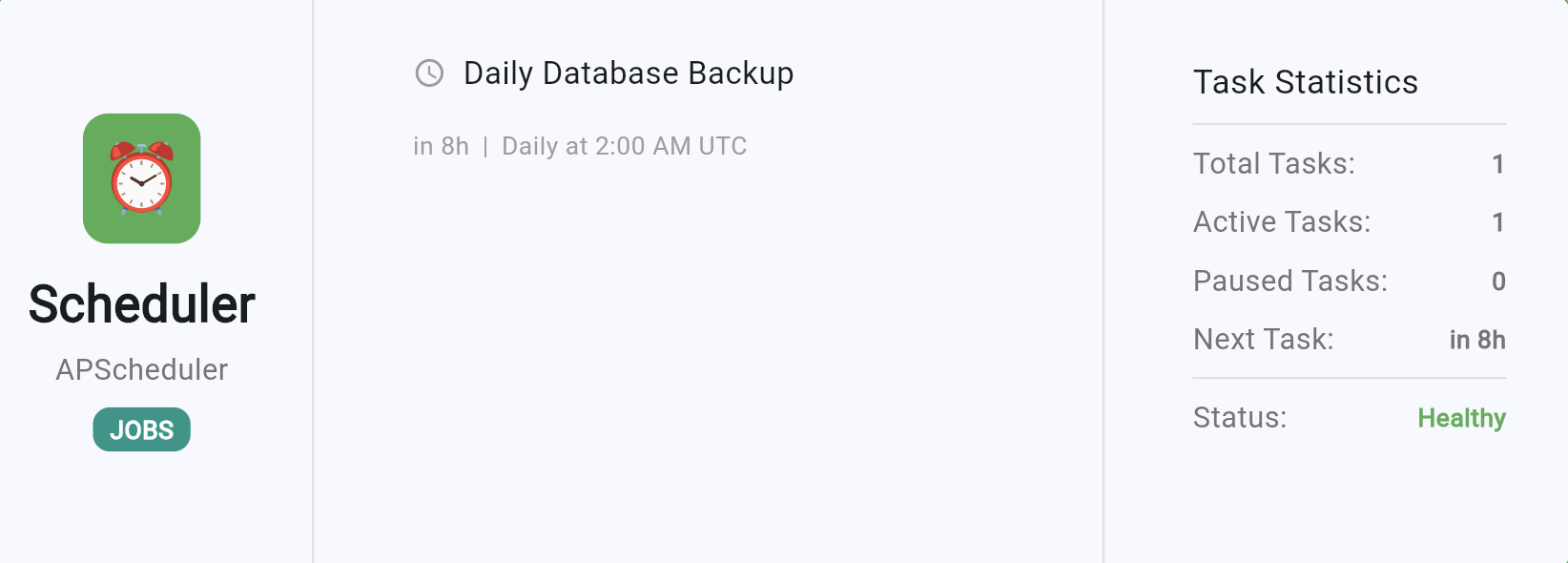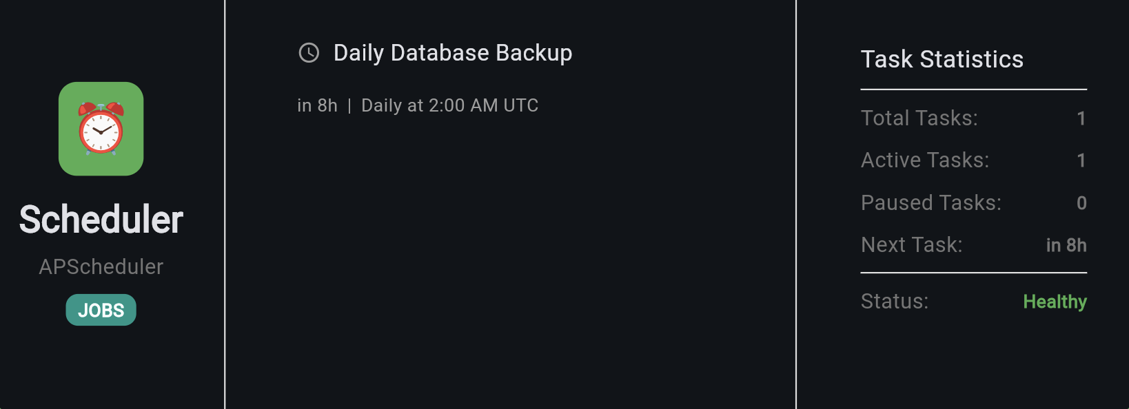 ├─ database_backup: Daily at 2:00 AM UTC → in 5h