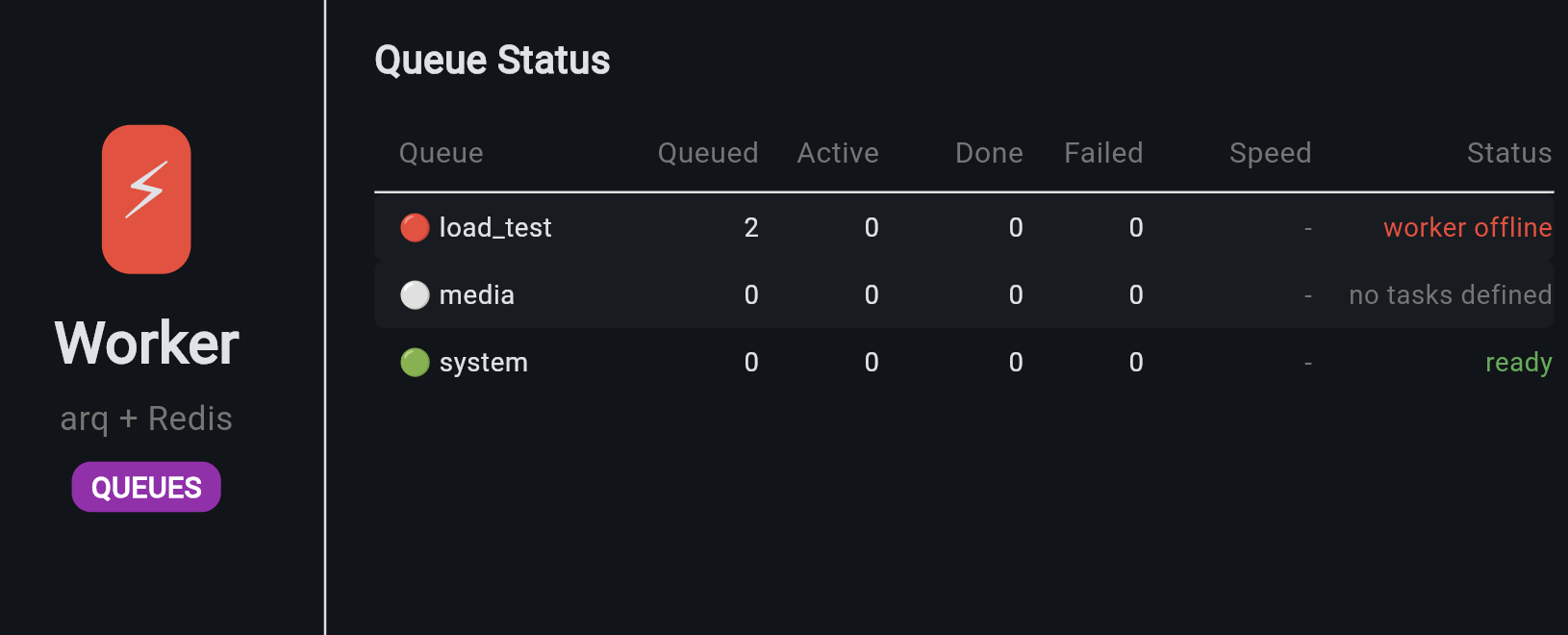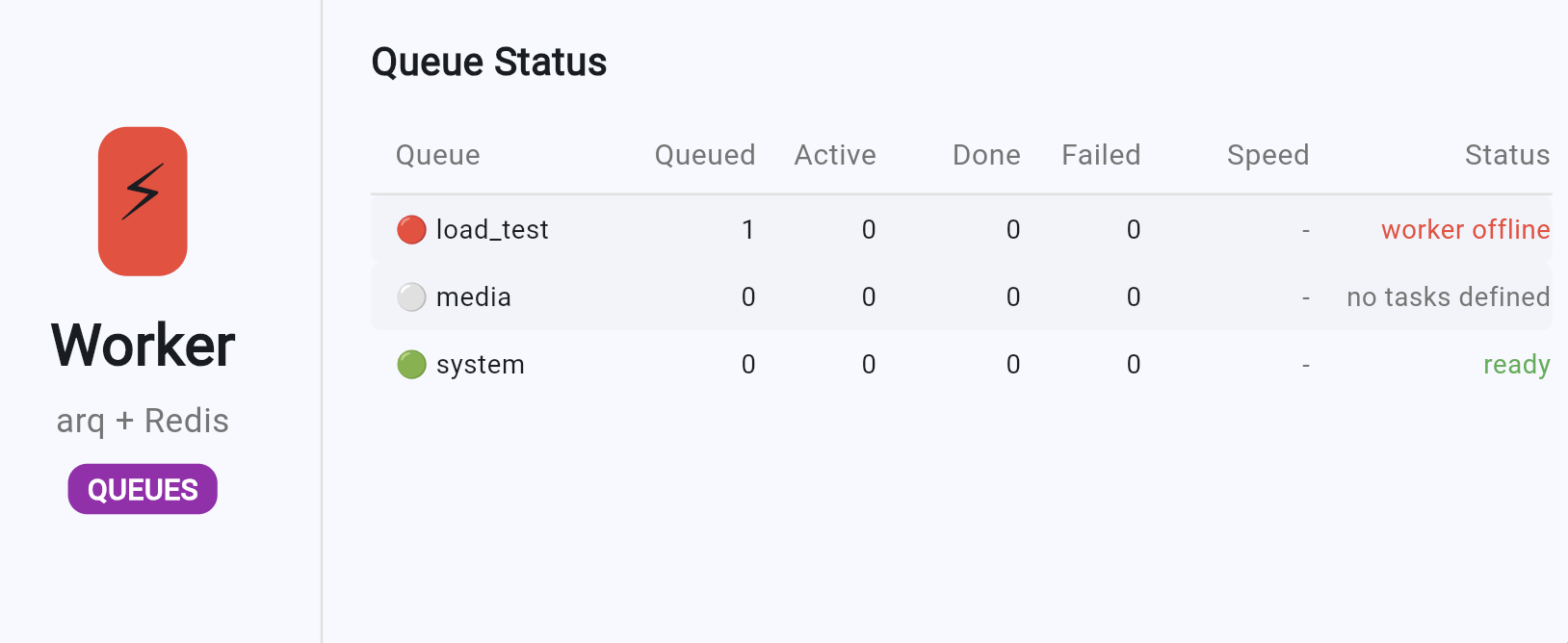 - System queue - For maintenance and background operations (15 concurrent jobs, 300s timeout)